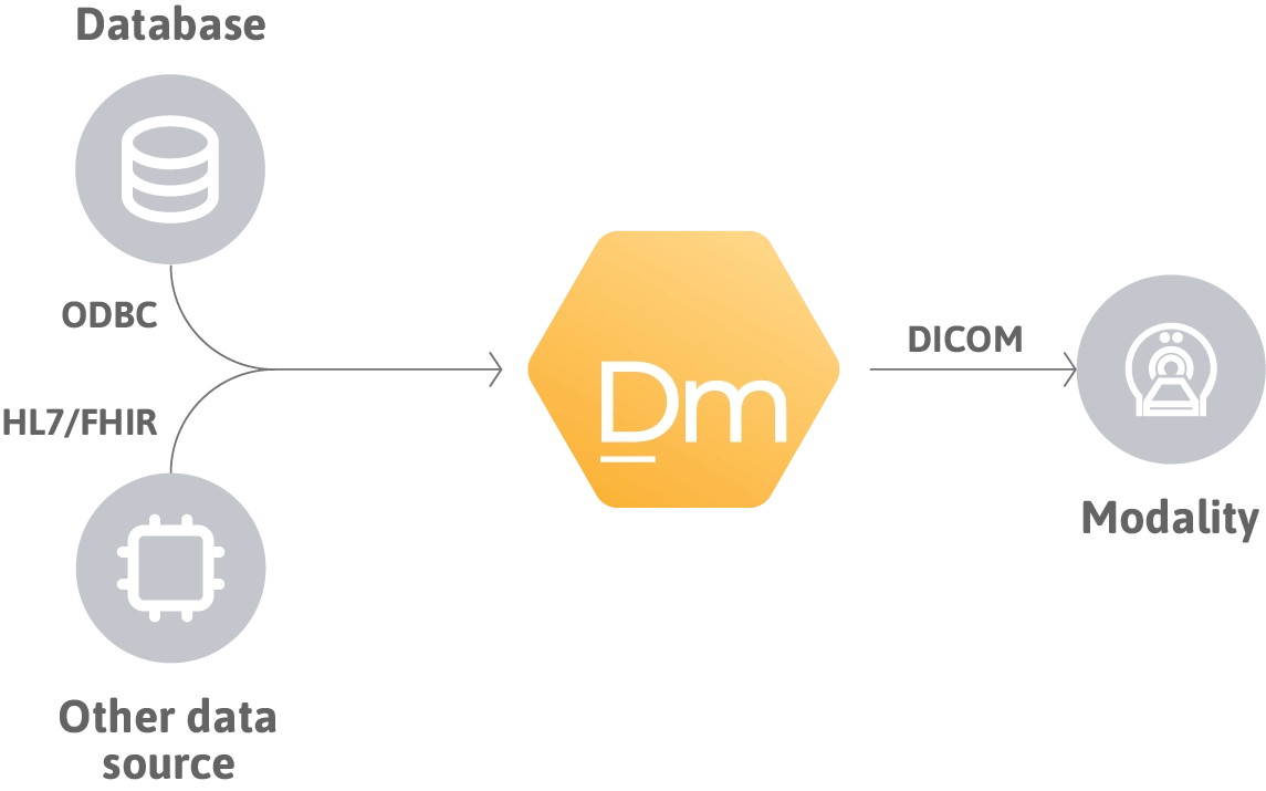 Traditionally, this process required technicians to manually enter patient demographics into the modality’s console, which was time-consuming and prone to errors. The DICOM Modality Worklist (MWL) service revolutionizes this process by enabling automated, reliable, and error-free data transfer from any data source directly to the imaging modalities. This standardized method is supported by almost all manufacturers of digital DICOM modalities.
